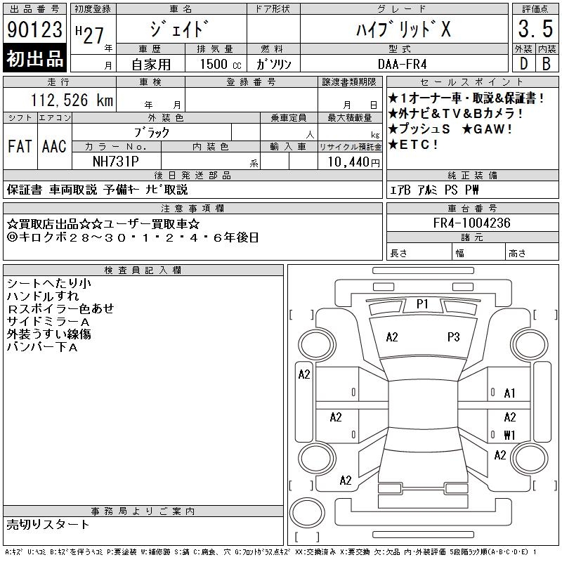HONDA JADE HYBRID X - лот 90123