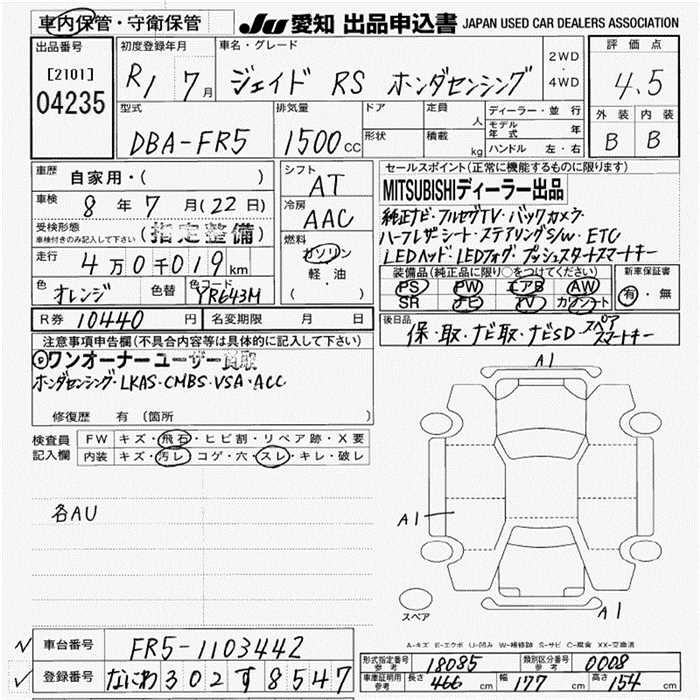 HONDA JADE RS HONDA SENSING - лот 4235
