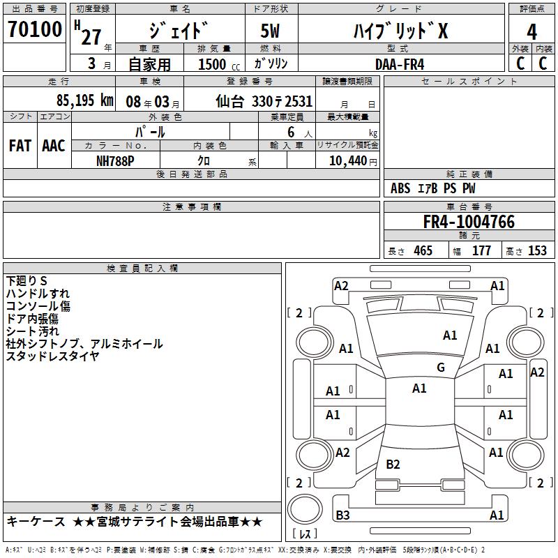 HONDA JADE HYBRID X - лот 70100