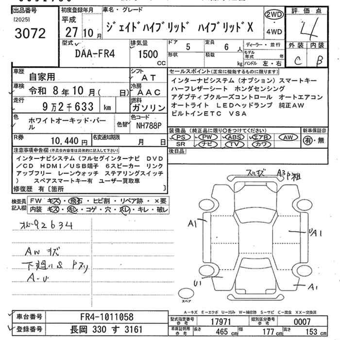 HONDA JADE HYBRID X - лот 3072