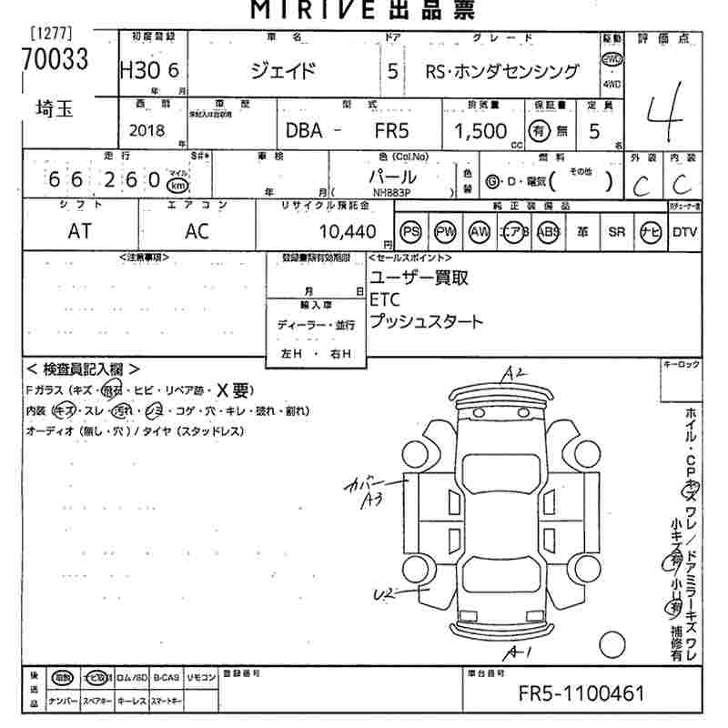 HONDA JADE RS* HONDA SENSING - лот 70033