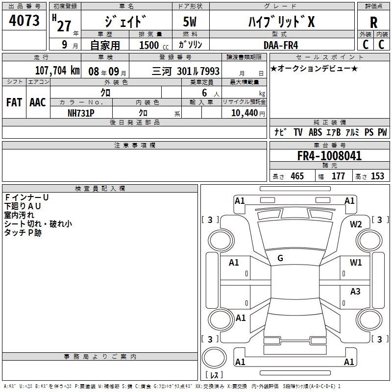 HONDA JADE HYBRID X - лот 4073