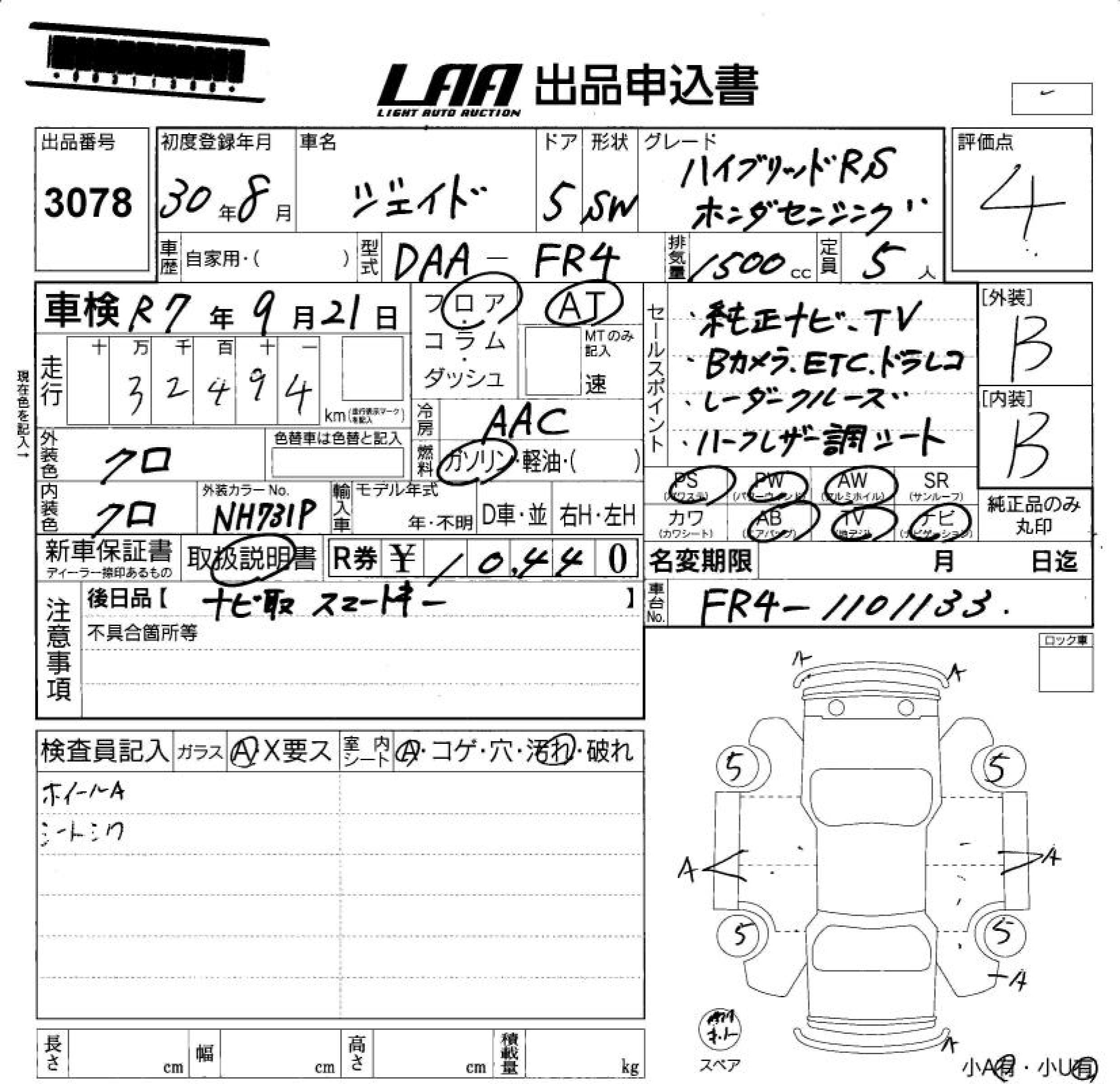 HONDA JADE HYBRID RS* HONDA SENSI - лот 3078
