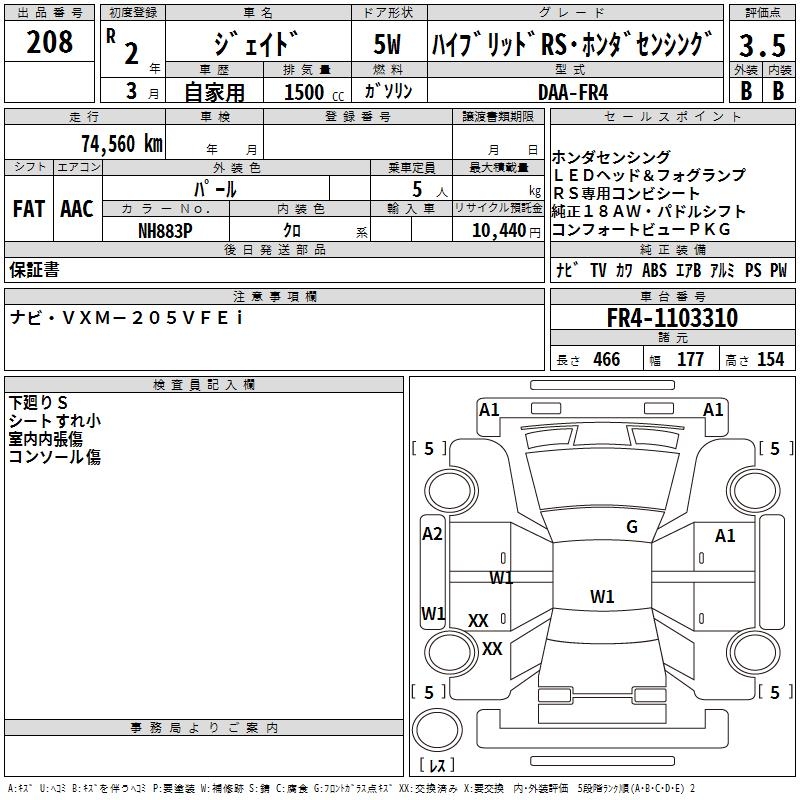HONDA JADE HYBRID RS HONDA SENSING - лот 208