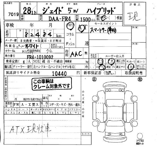HONDA JADE HV - лот 7019