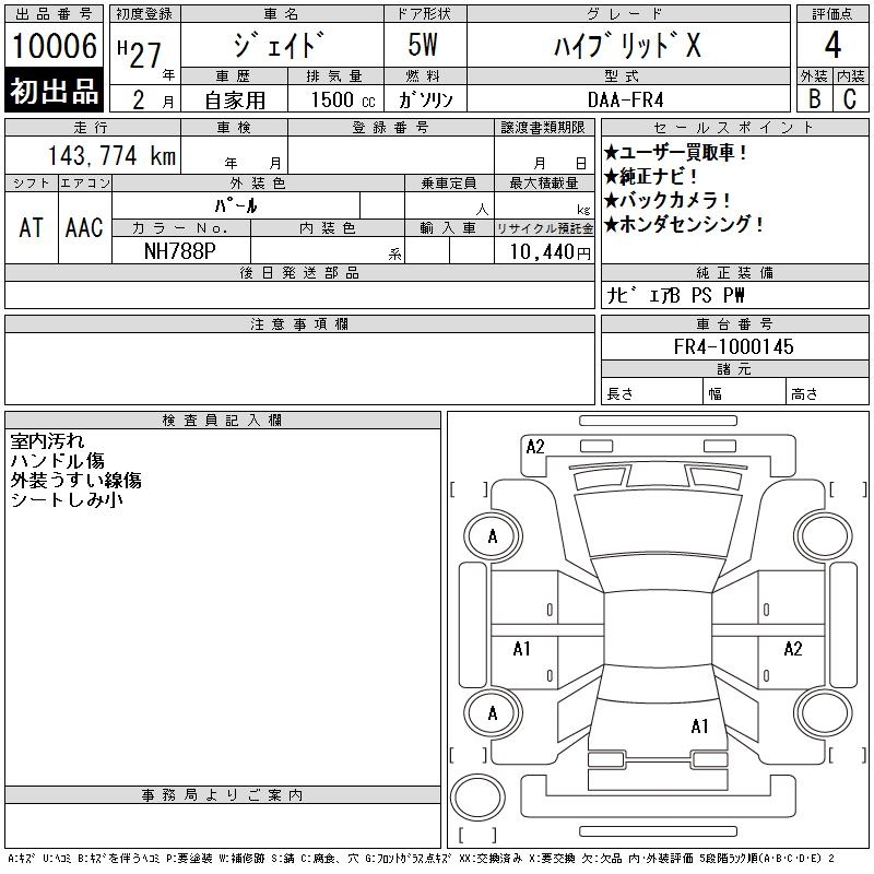 HONDA JADE HYBRID X - лот 10006