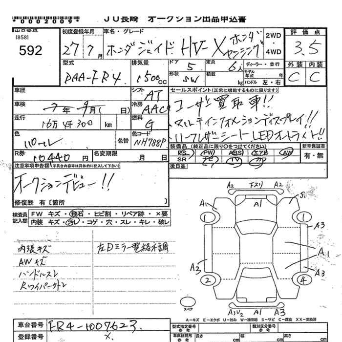 HONDA JADE HYBRID X HONDA SENSING - лот 592