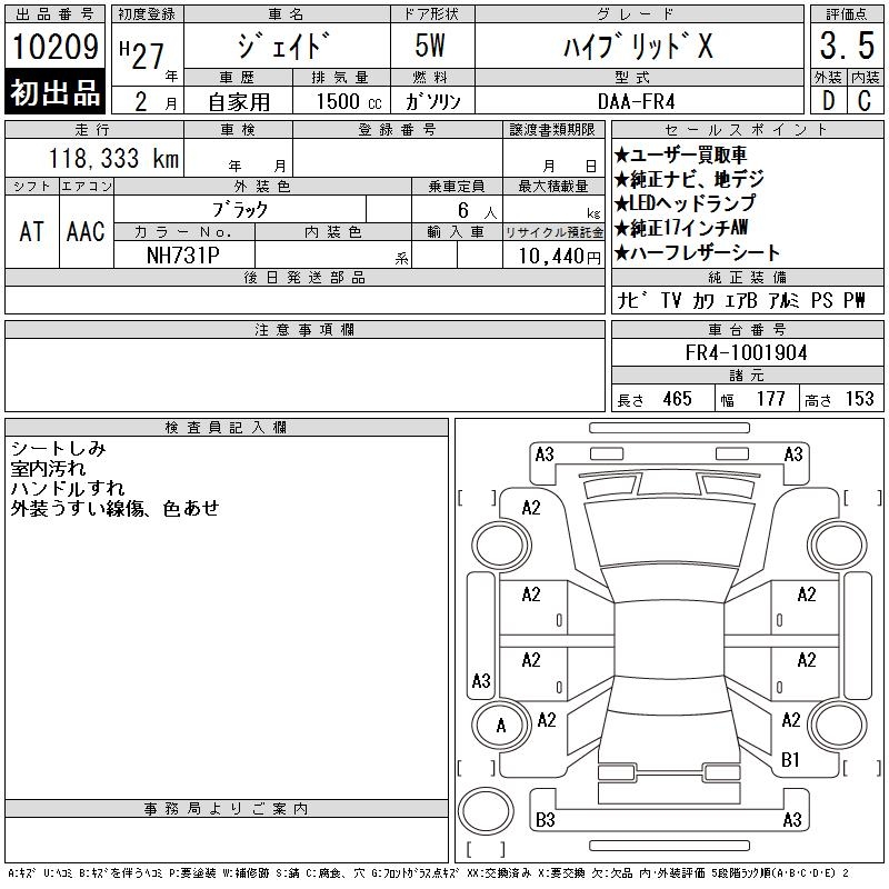 HONDA JADE HYBRID X - лот 10209