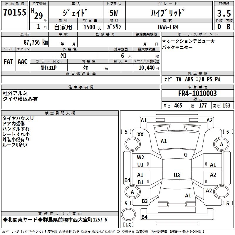 HONDA JADE HYBRID - лот 70155