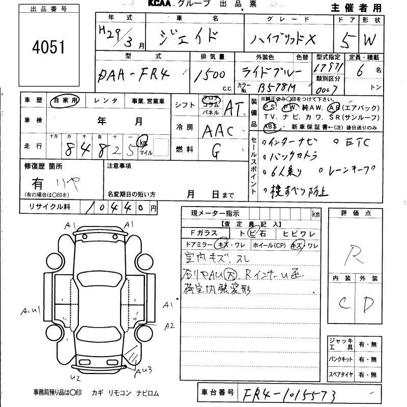 HONDA JADE hybrid X - лот 4051