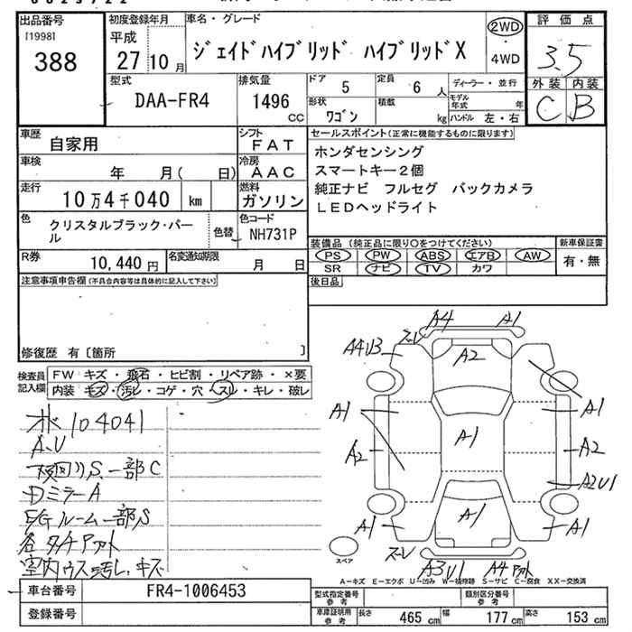 HONDA JADE hybrid X - лот 388