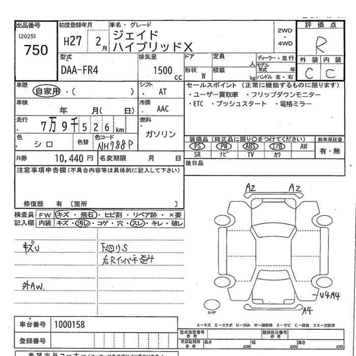 HONDA JADE hybrid X - лот 750