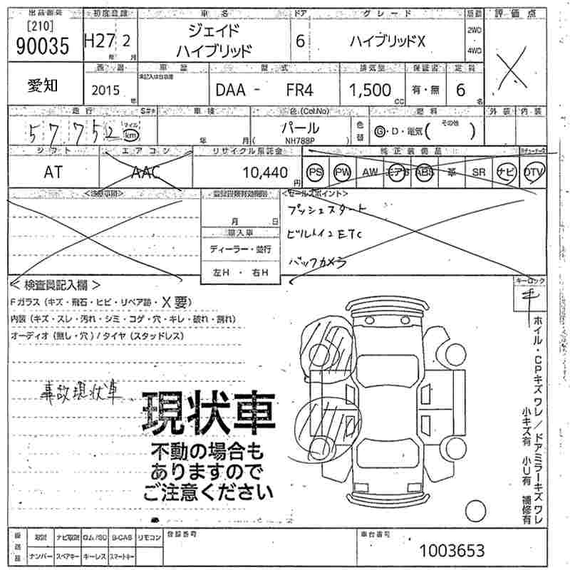 HONDA JADE hybrid X - лот 90035