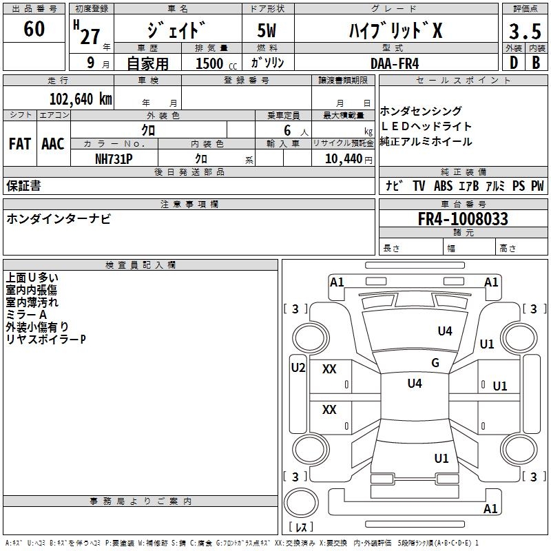 HONDA JADE hybrid X - лот 60