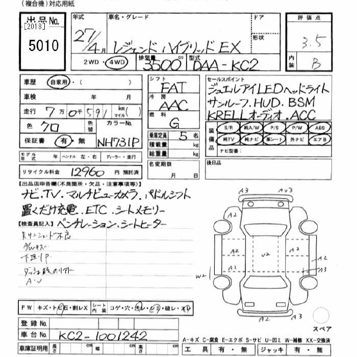 HONDA LEGEND 4WD HYBRID EX - лот 5010