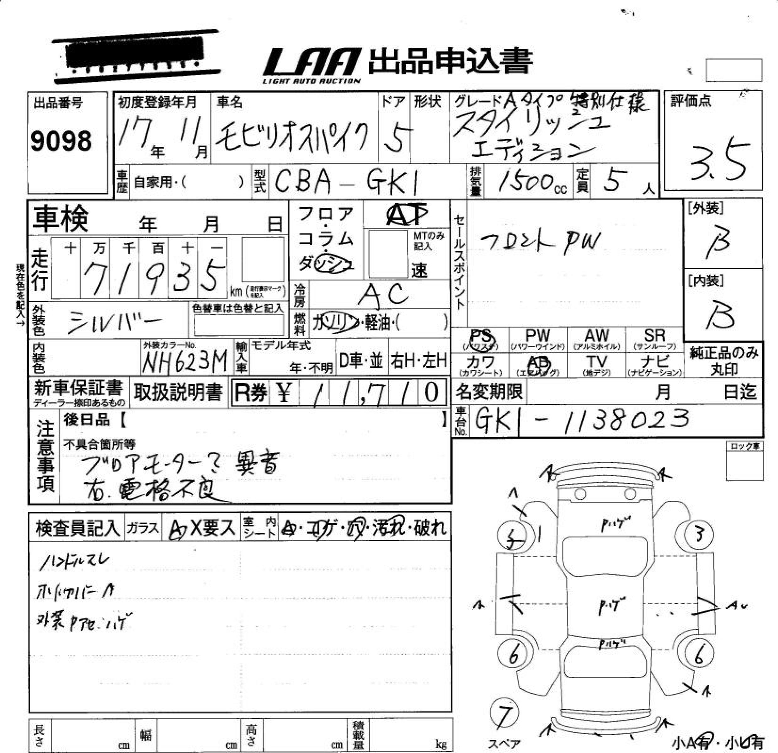 HONDA MOBILIO SPIKE - лот 9098