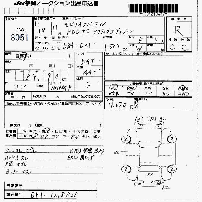 HONDA MOBILIO SPIKE - лот 8051