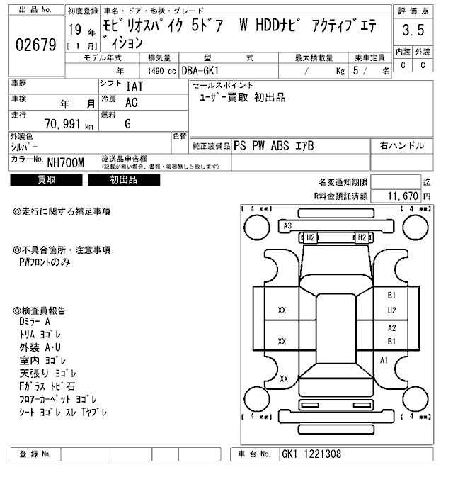 HONDA MOBILIO SPIKE - лот 2679