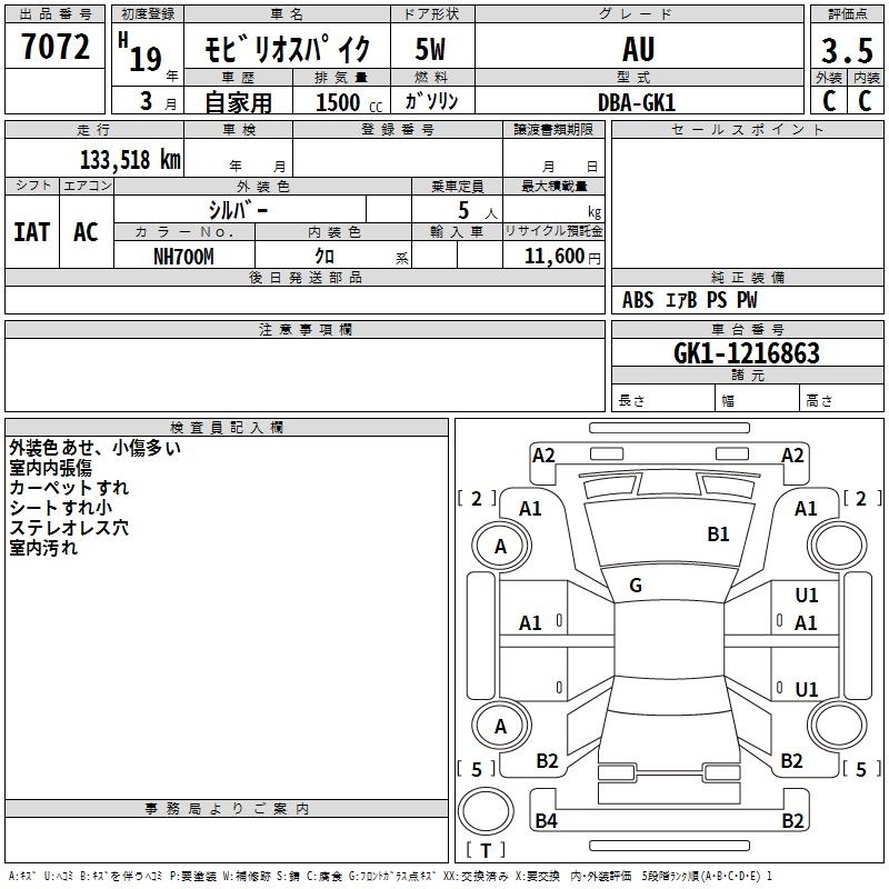 HONDA MOBILIO SPIKE - лот 7072