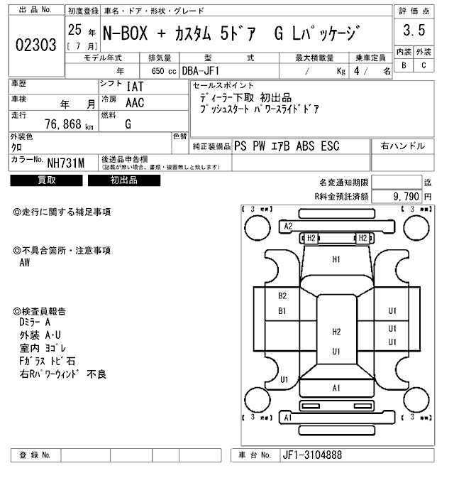HONDA N BOX+CUSTOM - лот 2303