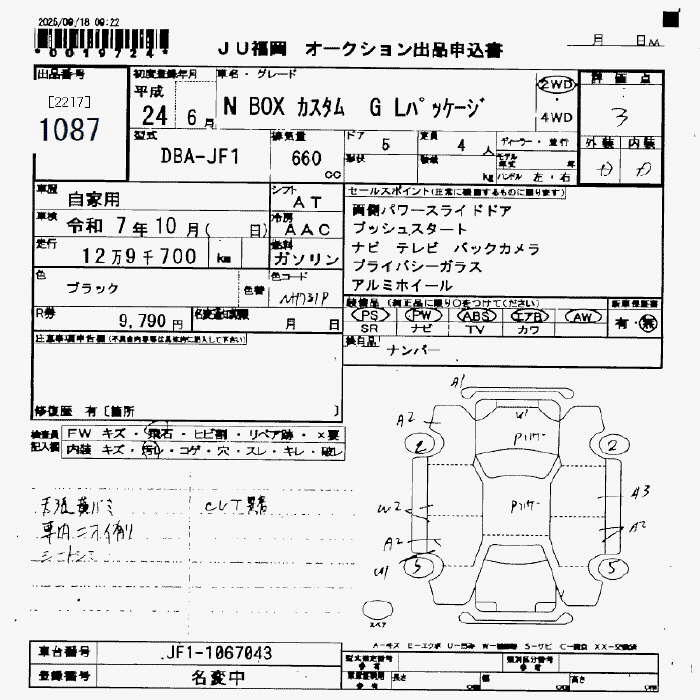 HONDA N BOX CUSTOM G L PACKAGE - лот 1087