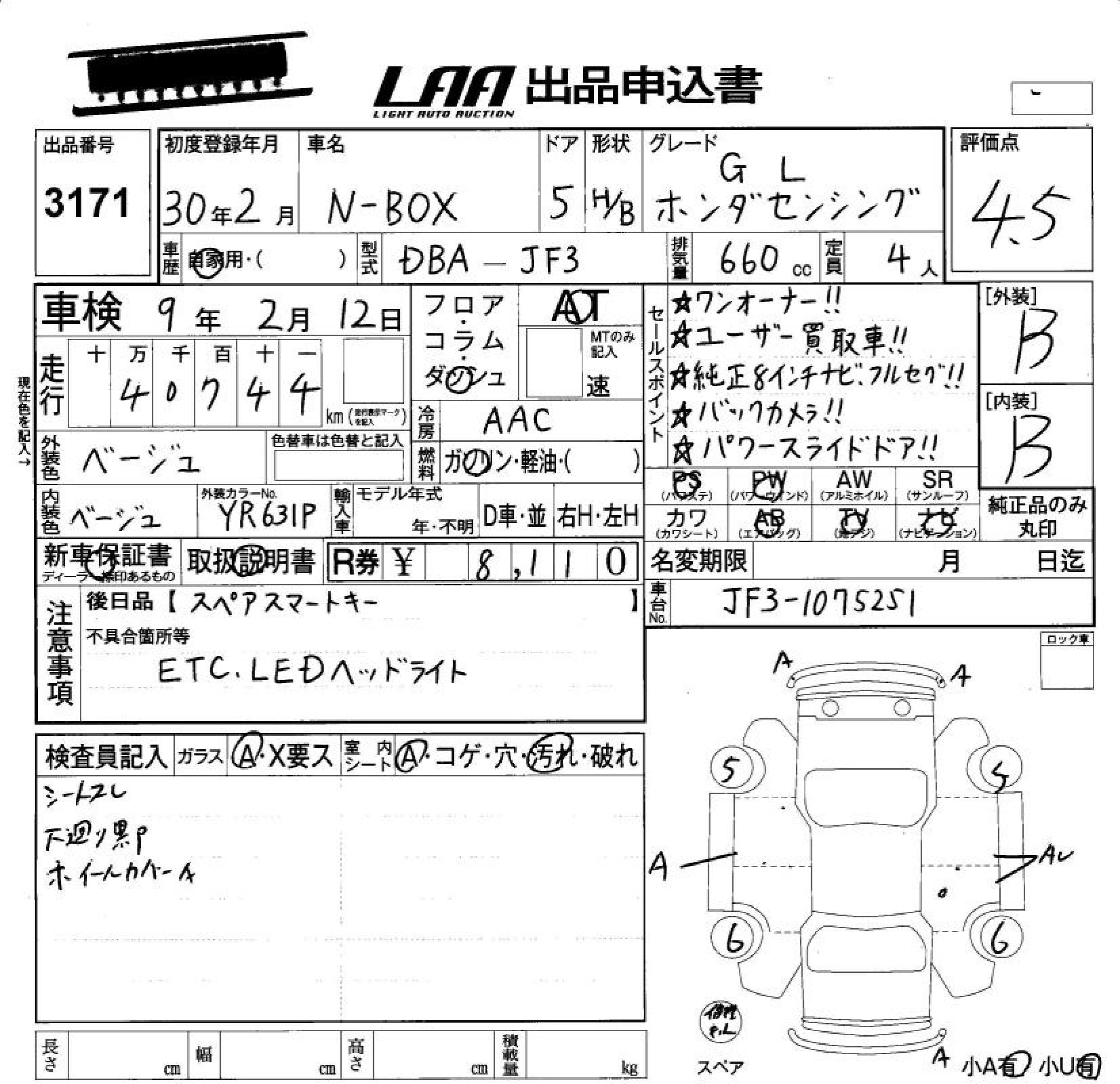 HONDA N BOX G*L HONDA SENSING - лот 3171