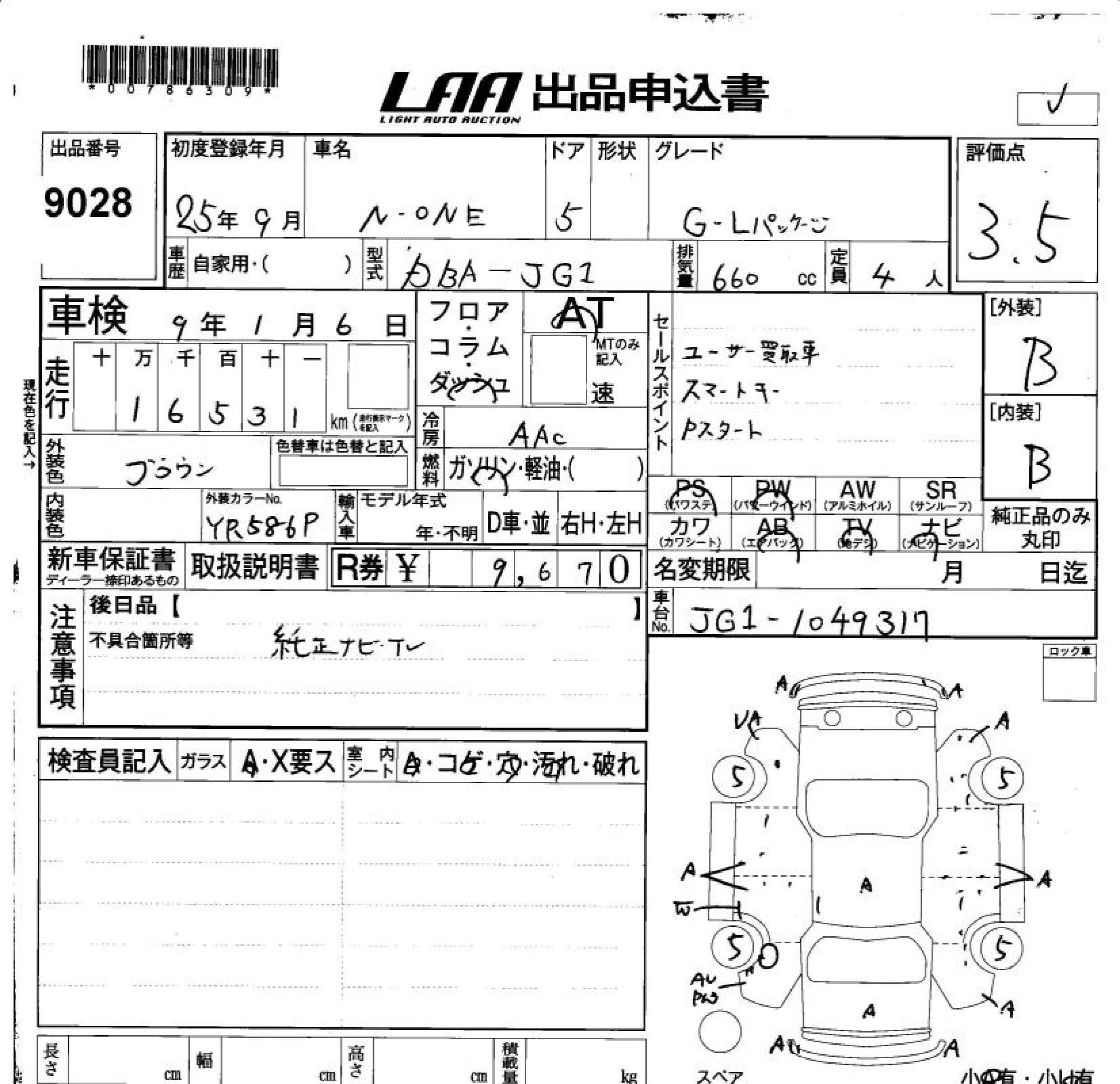 HONDA N-ONE - лот 9028
