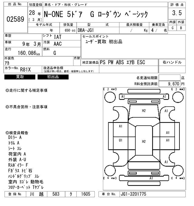 HONDA N-ONE - лот 2589