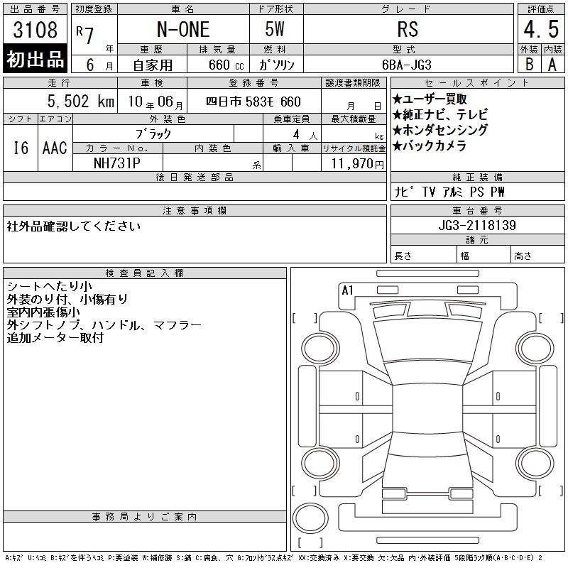 HONDA N-ONE - лот 3108