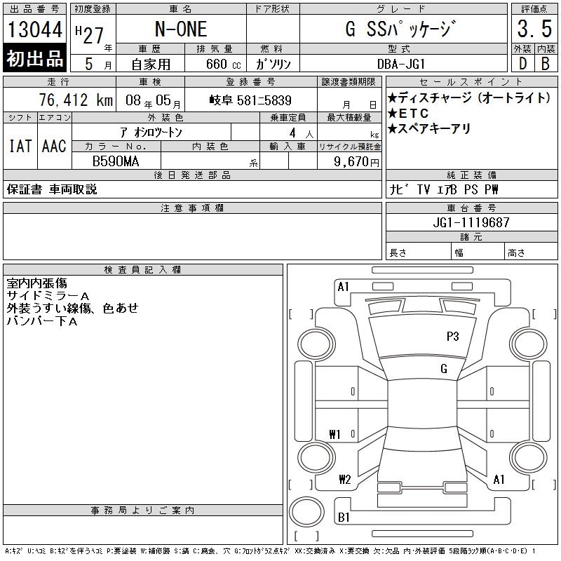 HONDA N-ONE - лот 13044