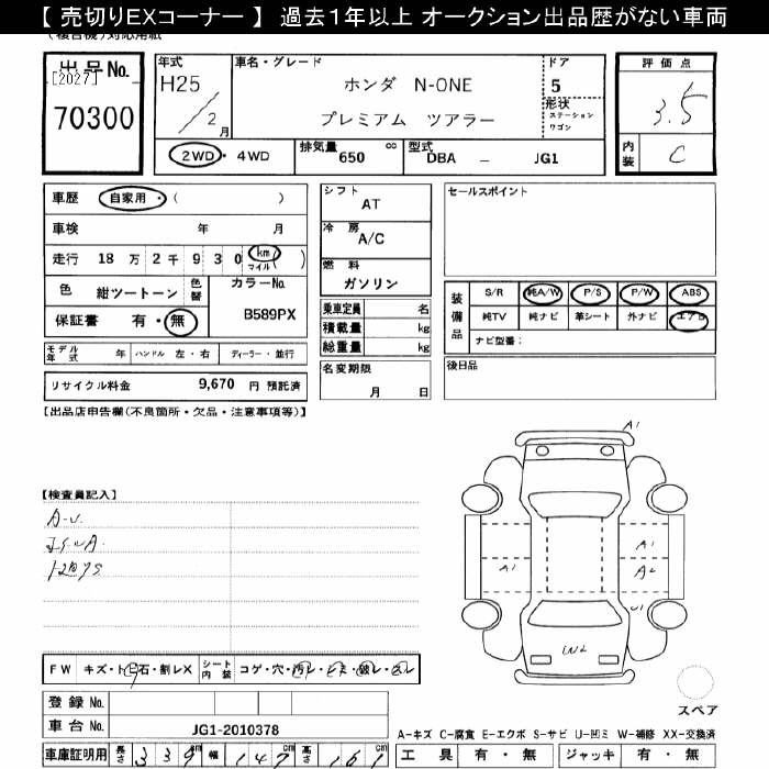 HONDA N-ONE - лот 70300