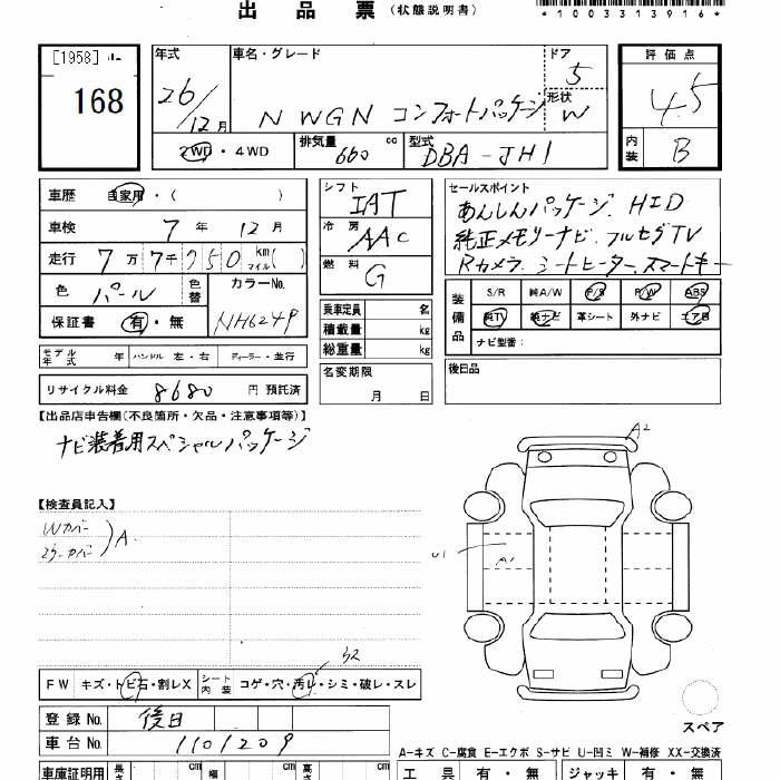 HONDA N-WGN - лот 168