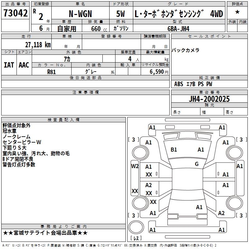 HONDA N-WGN - лот 73042