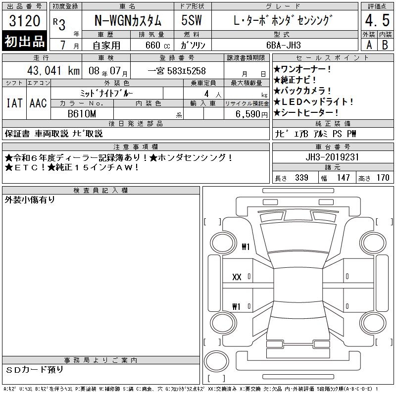 HONDA N-WGN - лот 3120