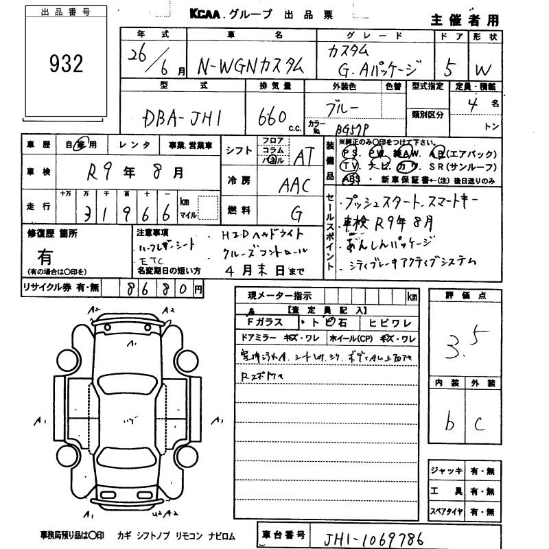 HONDA N-WGN - лот 932