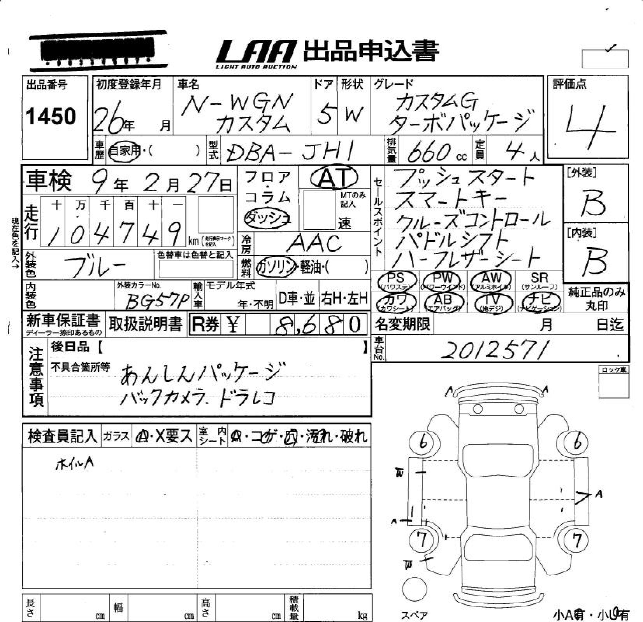 HONDA N-WGN - лот 1450