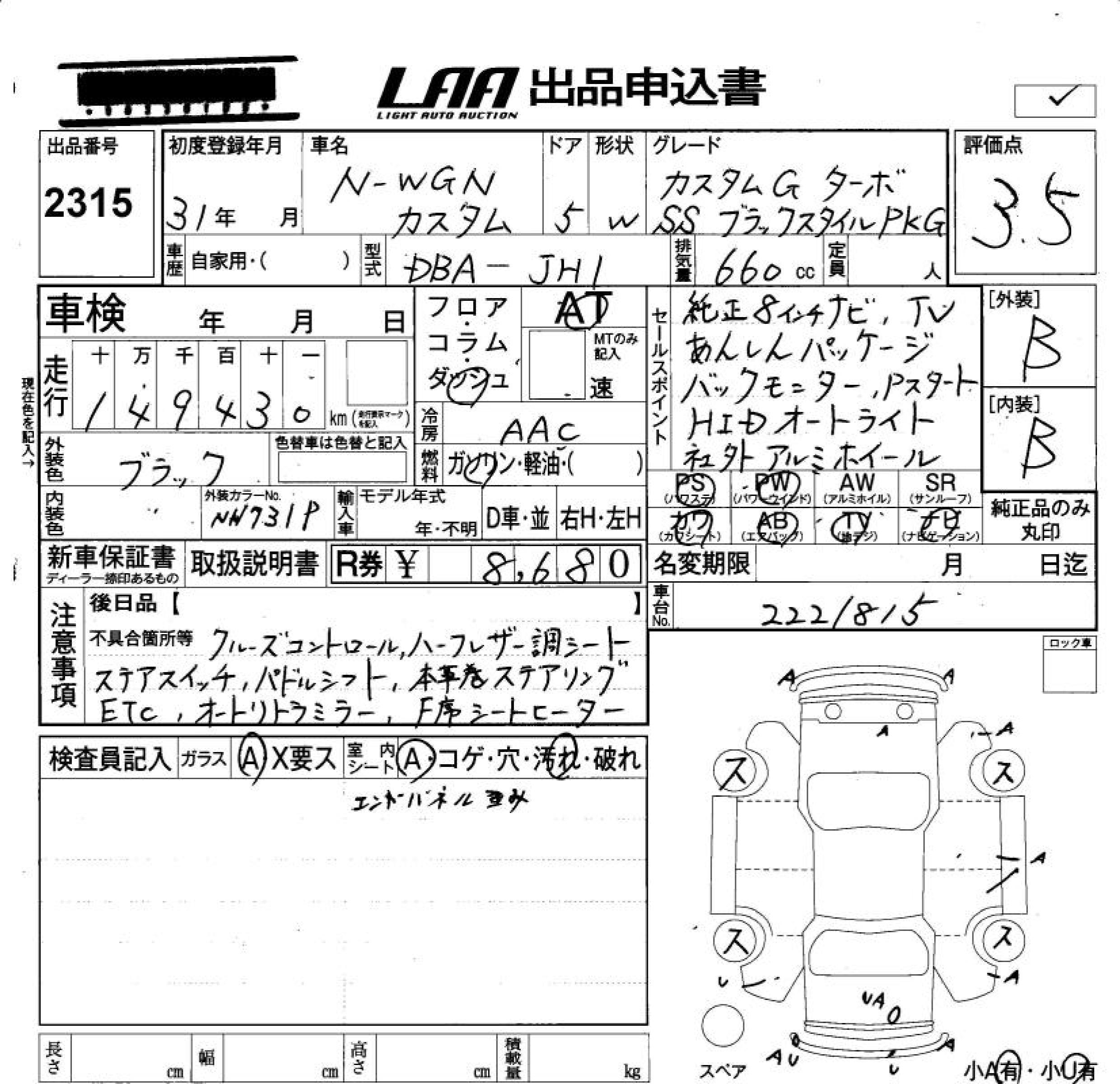 HONDA N-WGN - лот 2315