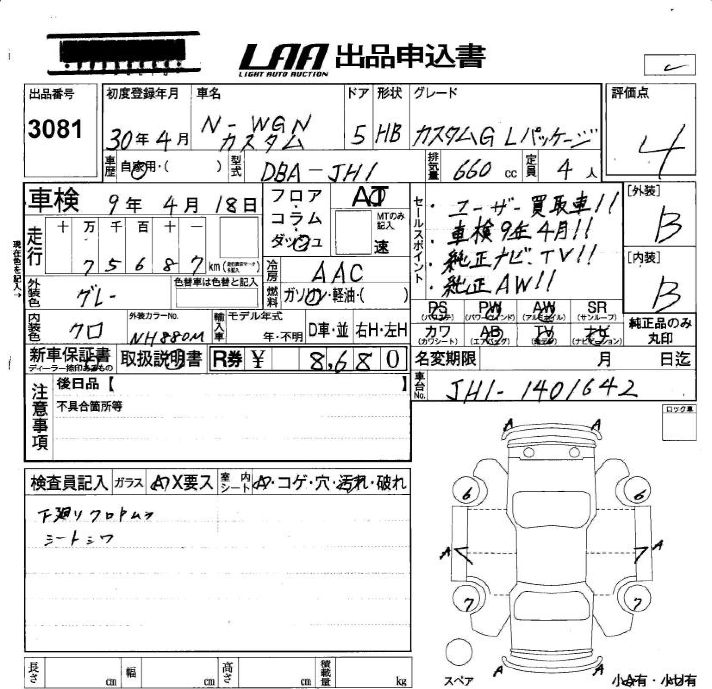 HONDA N-WGN - лот 3081