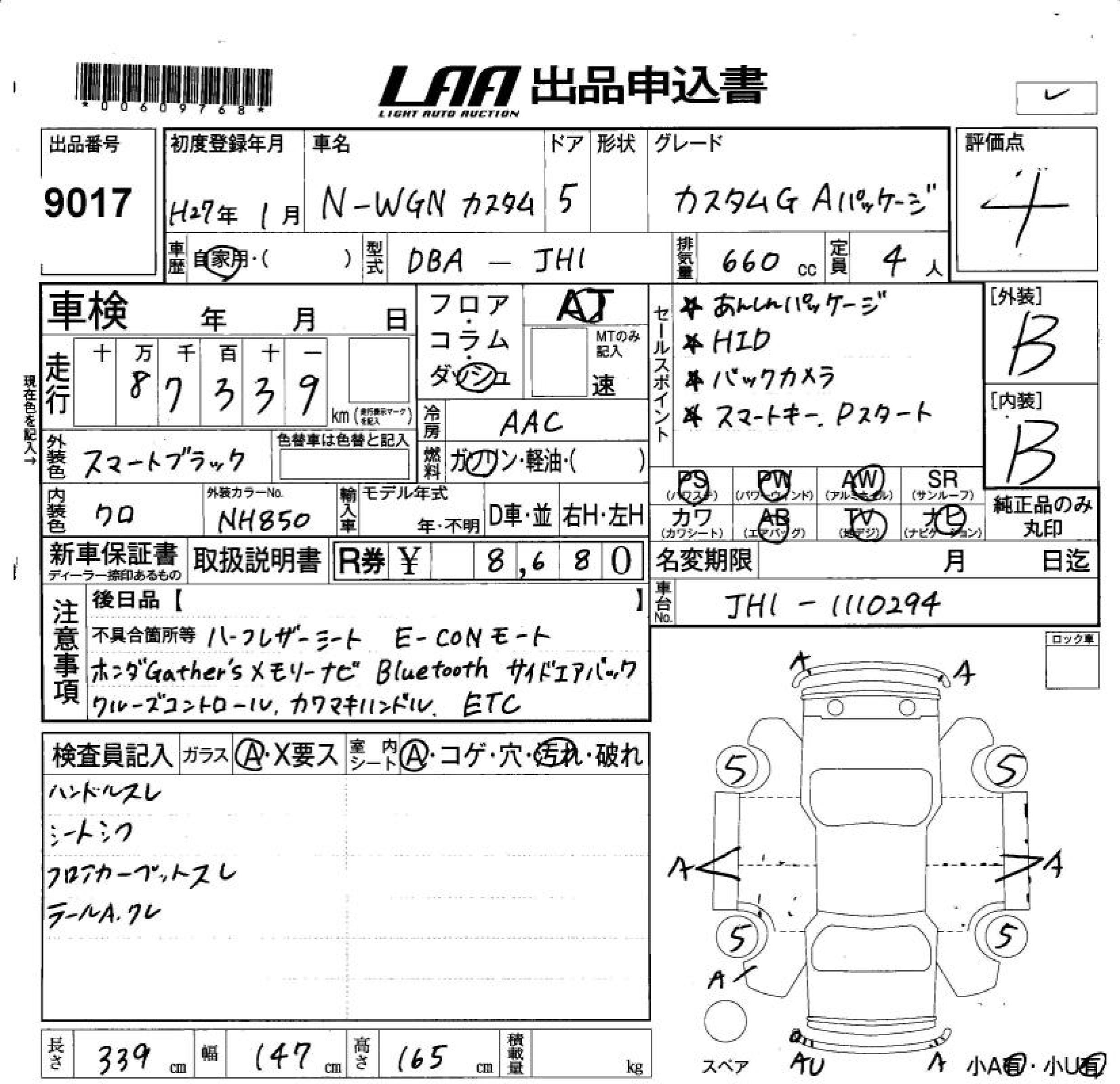 HONDA N-WGN - лот 9017