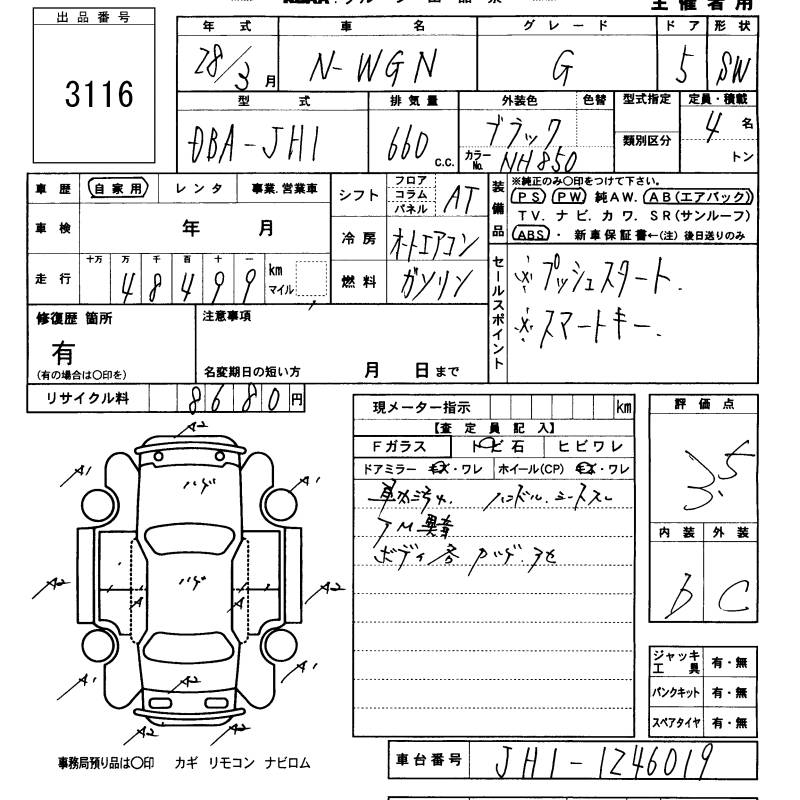 HONDA N-WGN - лот 3116