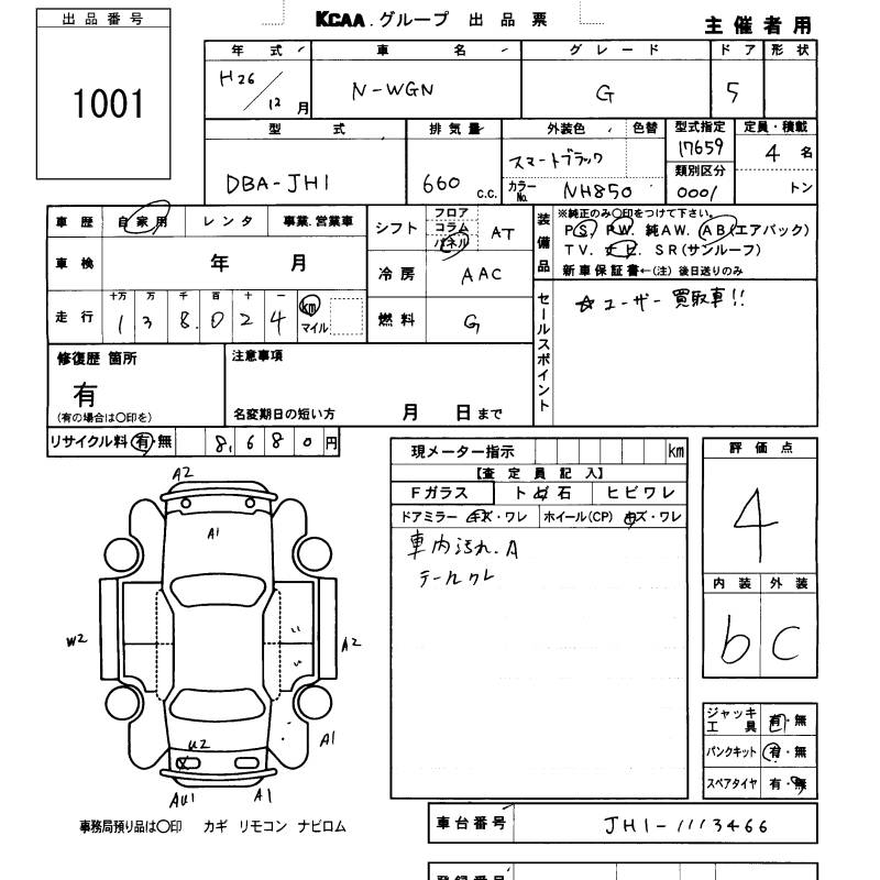 HONDA N-WGN - лот 1001