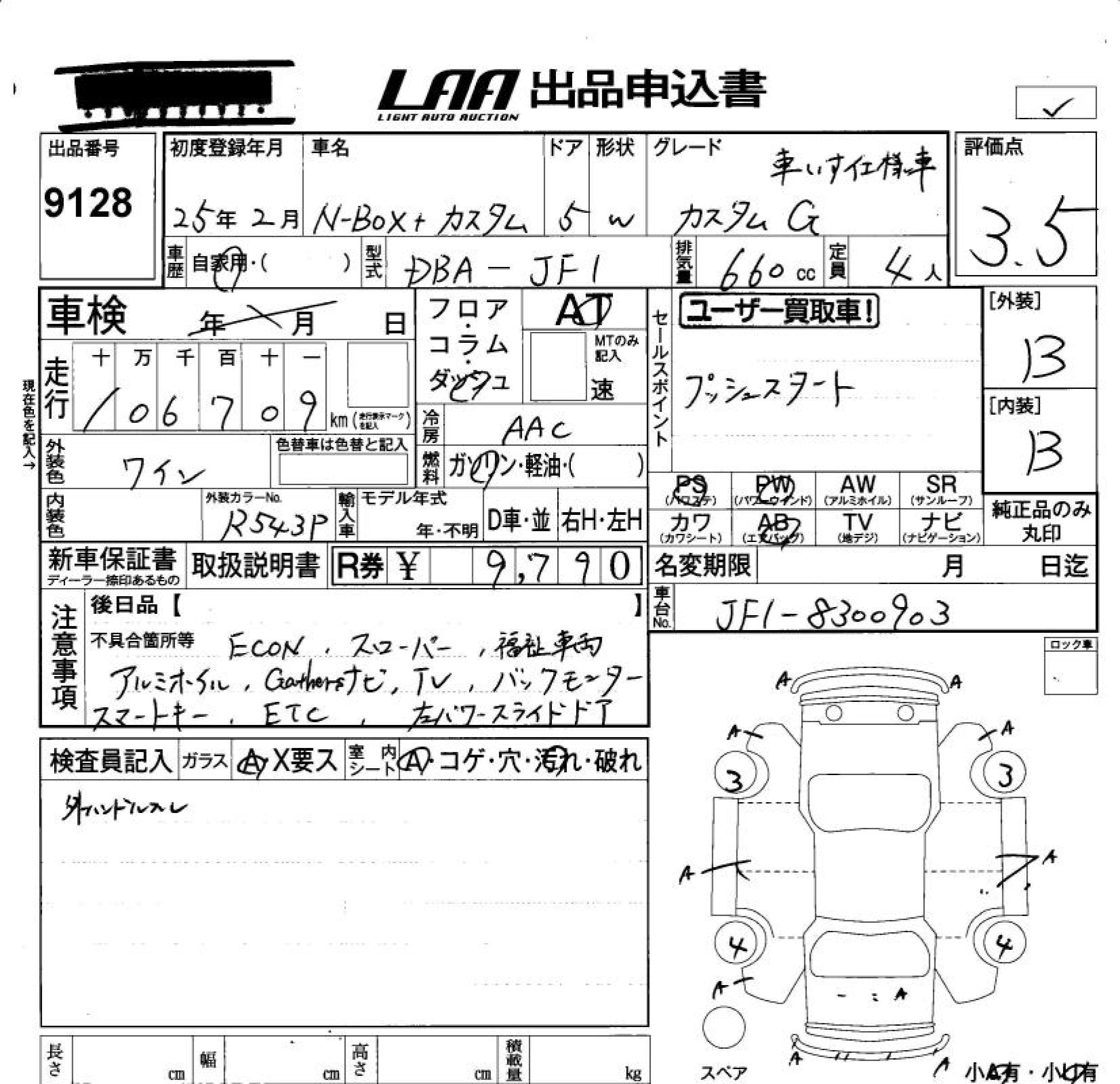 HONDA N BOX+CUSTOM - лот 9128