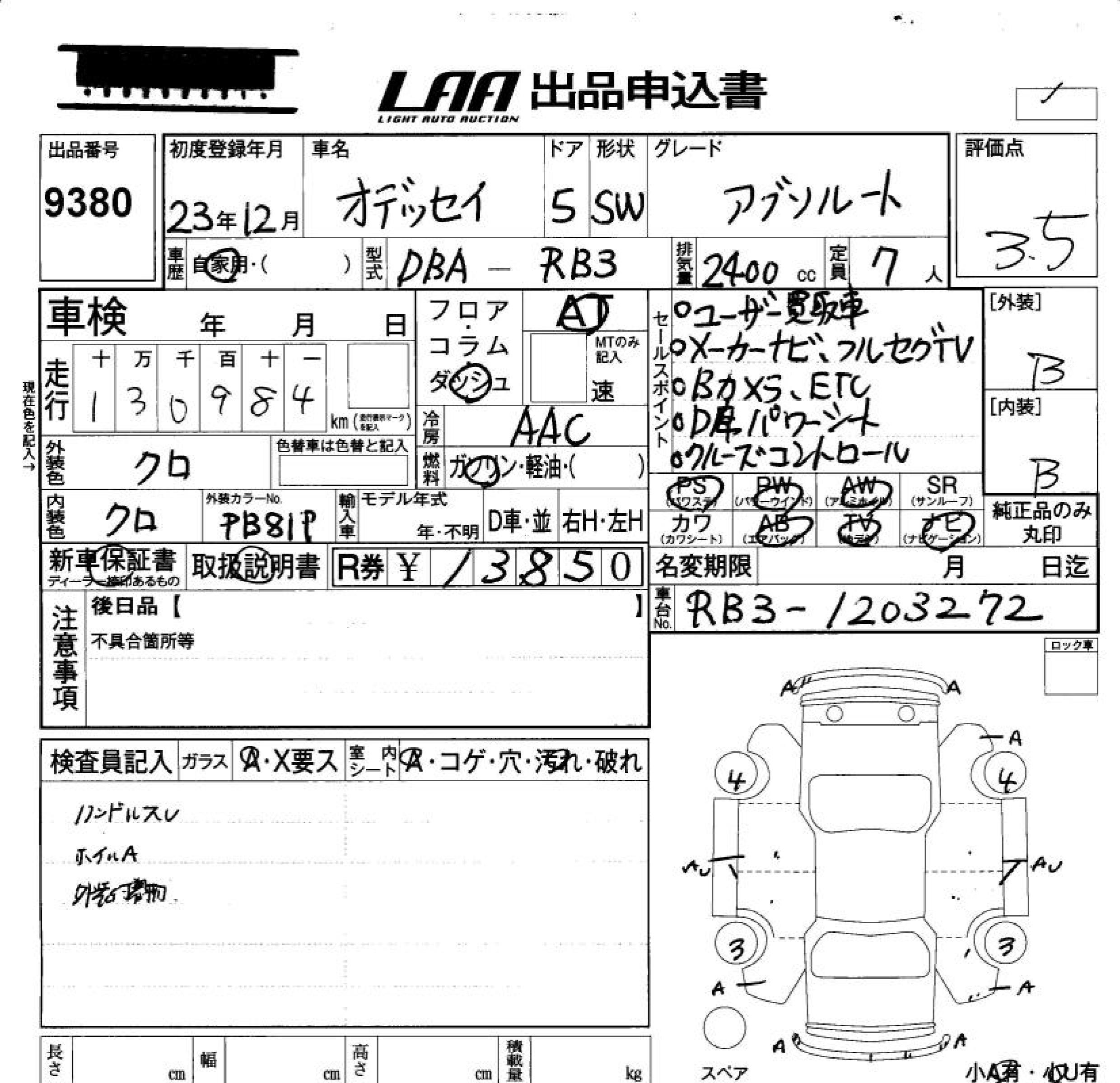 HONDA ODYSSEY - лот 9380