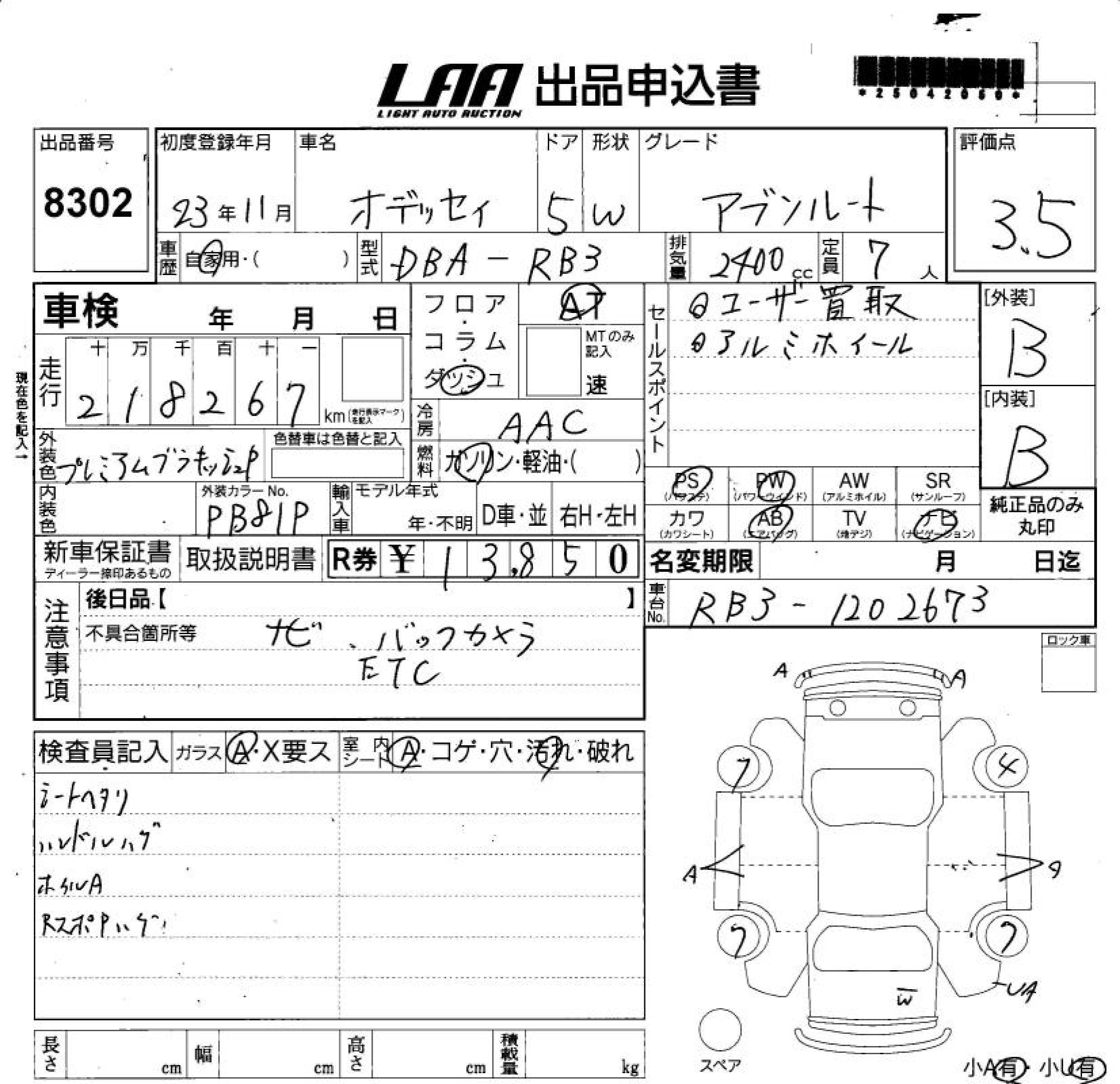 HONDA ODYSSEY - лот 8302