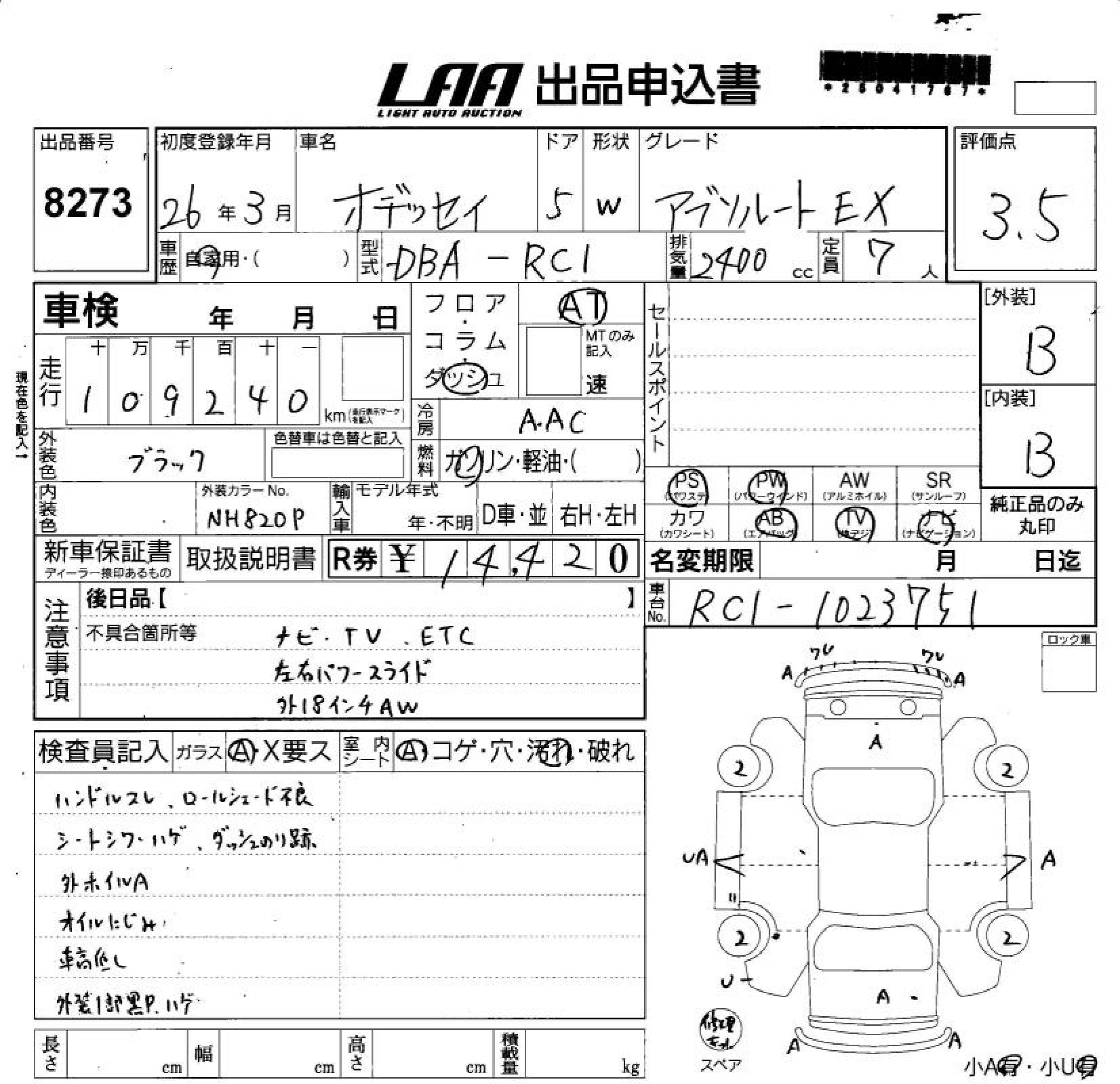 HONDA ODYSSEY - лот 8273