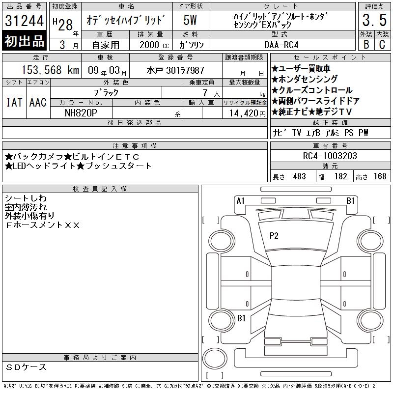 HONDA ODYSSEY HYBRID - лот 31244