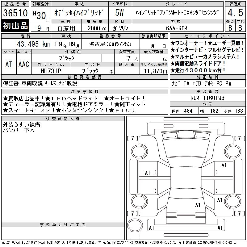 Все аукционы HONDA ODYSSEY HYBRID