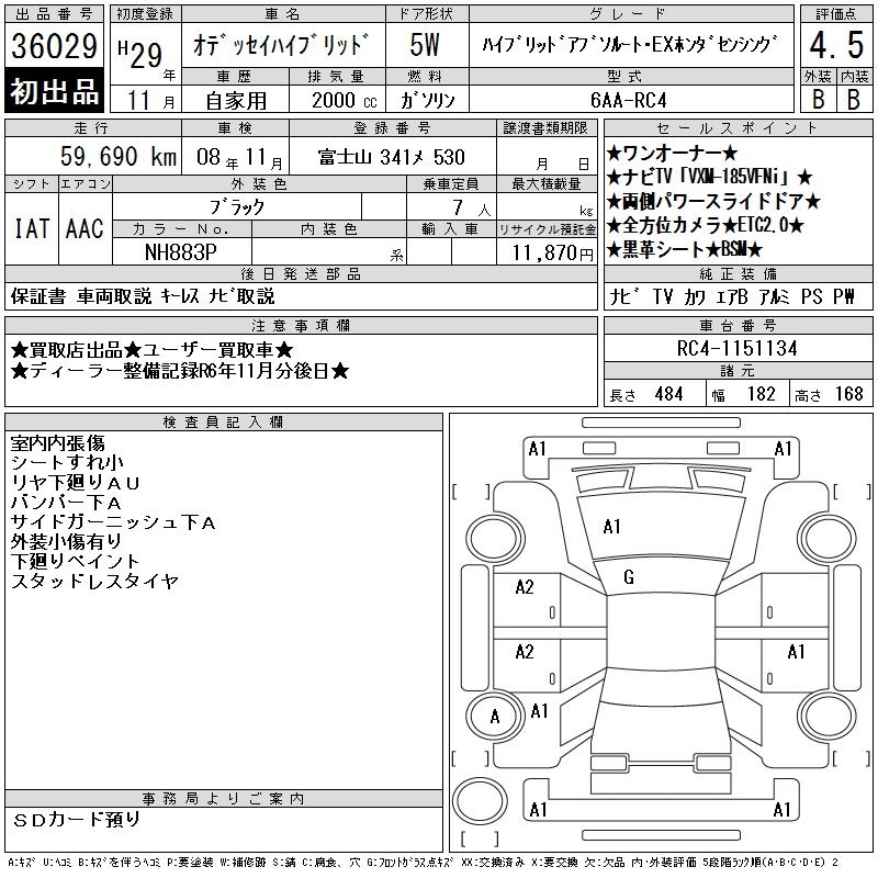 HONDA ODYSSEY HYBRID - лот 36029