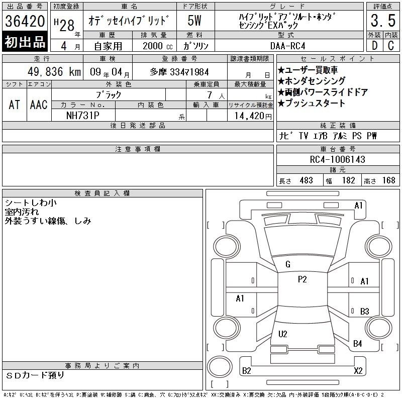 HONDA ODYSSEY HYBRID - лот 36420
