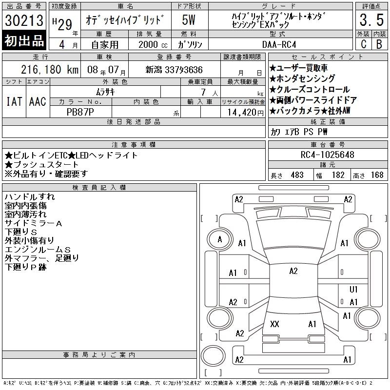 HONDA ODYSSEY HYBRID - лот 30213